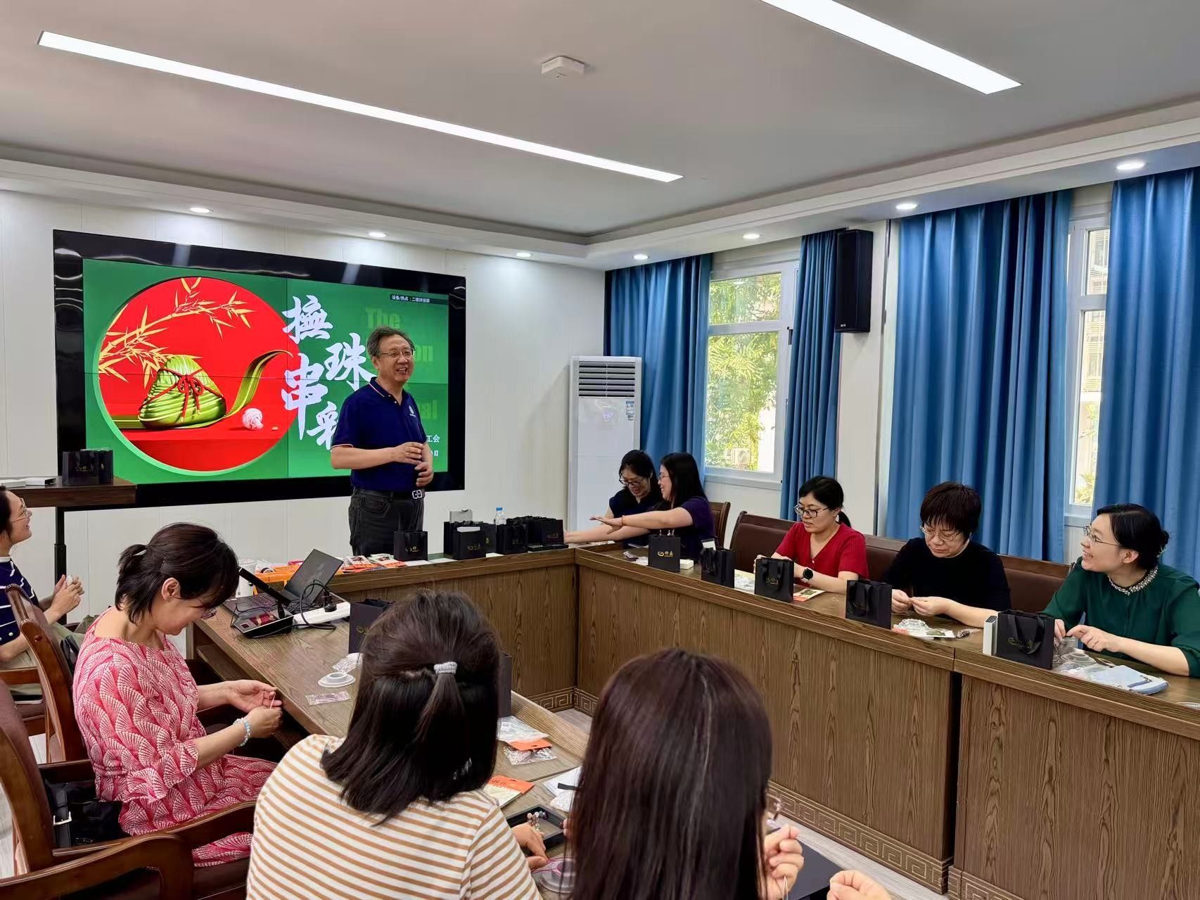 为烘托端午节节日氛围,提升学院女教师动手能力和艺术修养,2025年5月30日下午,学院工会在致远楼208会议室组织端午“抚珠串彩DIY”活动。活动由学院党委书记苏锦老师主持。